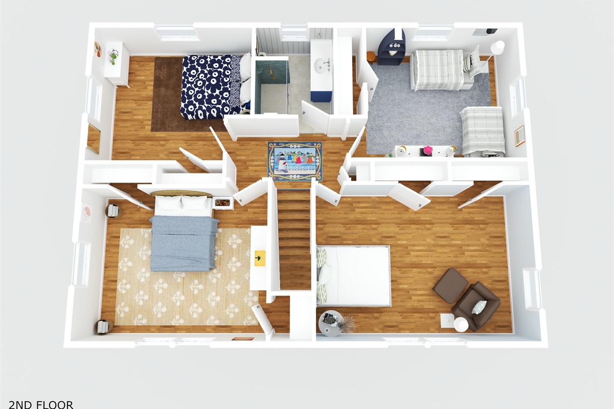 ☀ 4 comfortable upstairs bedrooms (3 queen rooms + 1 room with two full beds)
