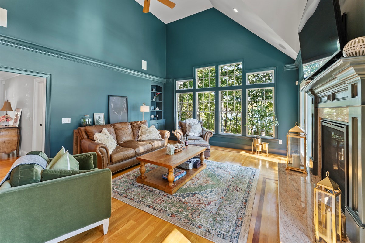 • Living room features plush seating, a fireplace, and a smart TV—great for movie nights or cozy mornings