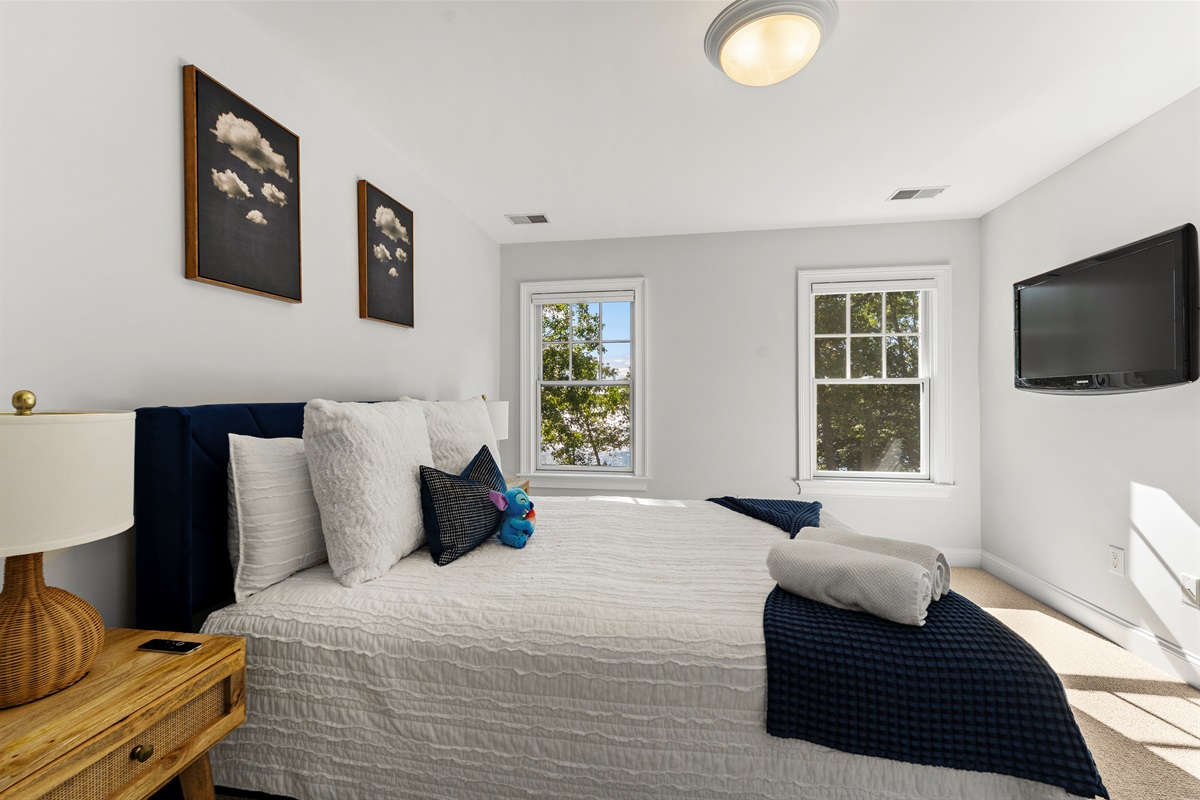 • Bedroom 3 (Upper Level): Furnished with a cozy queen bed.